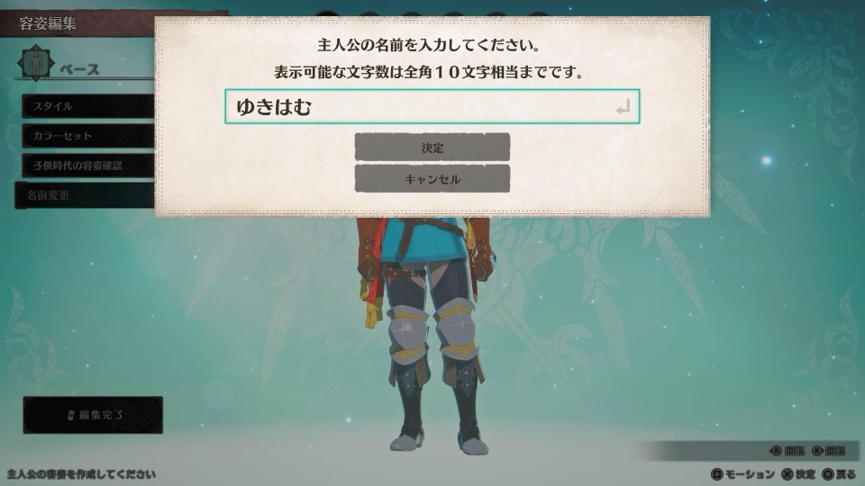 モンハンストーリーズ3では、キャラクター名の変更も可能です。