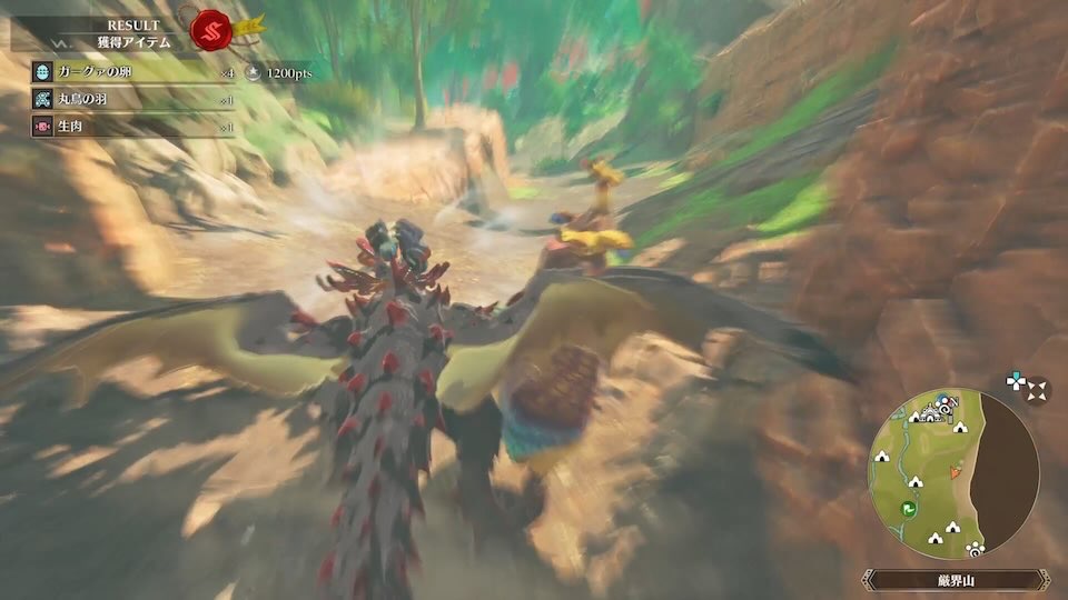 丸鳥の羽はガーグァから取れる素材です。ガーグァはカナルタ深林、厳界山の山道に複数体生息してます。