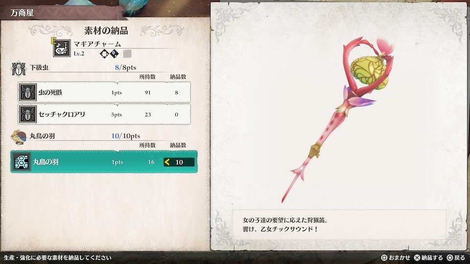 マギアチャームは、モンスター素材だけでは解放されない特殊な武器です。