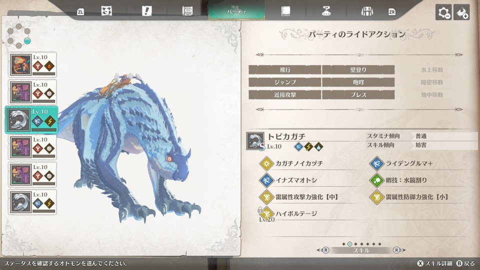 トビカガチ(水属性)は、水属性ゲリョス亜種を支えるサブ軸かつ重要なサポート要員です。