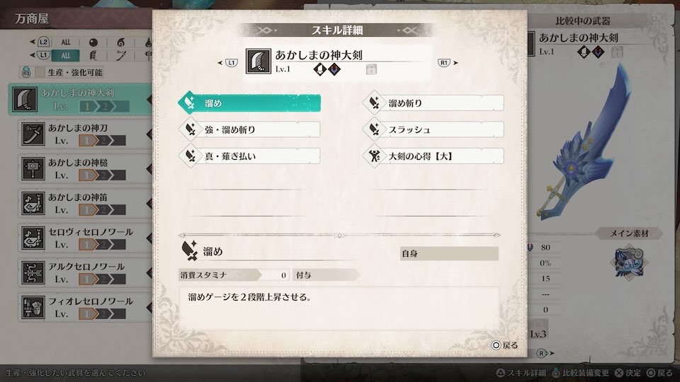 これらのモンスターはストーリー進行時点では非常に強いため、無理に討伐する必要はありません。戦闘して素材を回収する周回を行うことで、攻撃力80の強力な武器を作成することができます。
