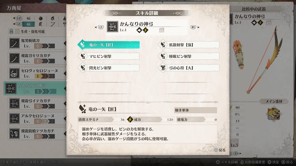 雷神龍素材からは弓のみ作成可能です。