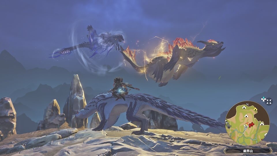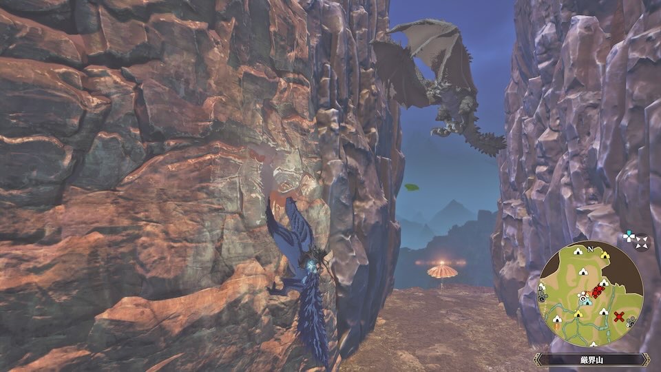 具体的な場所は、ネコタクスタンド「厳界山」から少し登った先です。ネコタクスタンドから進み、壁を登ったすぐの場所に天変古龍が出現します。