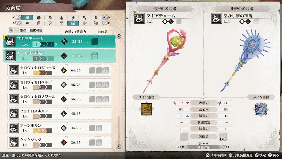 序盤で作成できる武器としてはかなり強力なので、まず1本作るならこの武器がおすすめです。