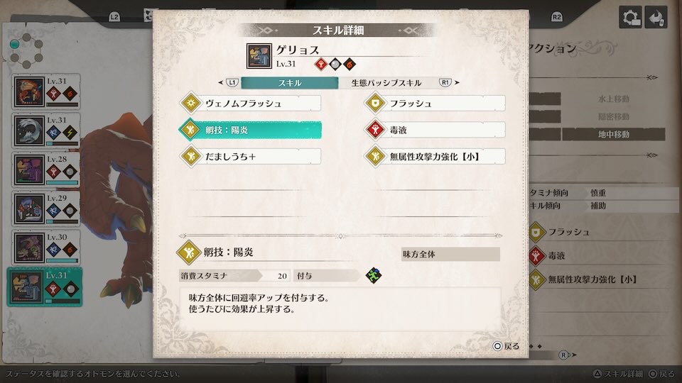 メインパーティに陽炎持ちがいない場合は、好きなオトモンに継承するのもおすすめです。