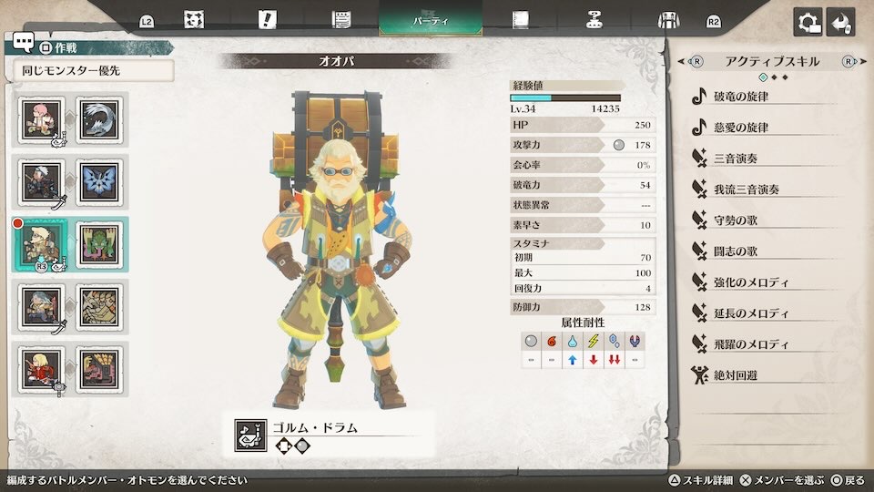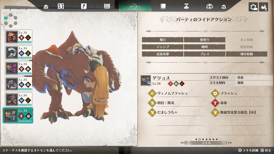 今回使用したオトモンはゲリョスですが、伝承の儀で孵技を付け替えることも可能です。