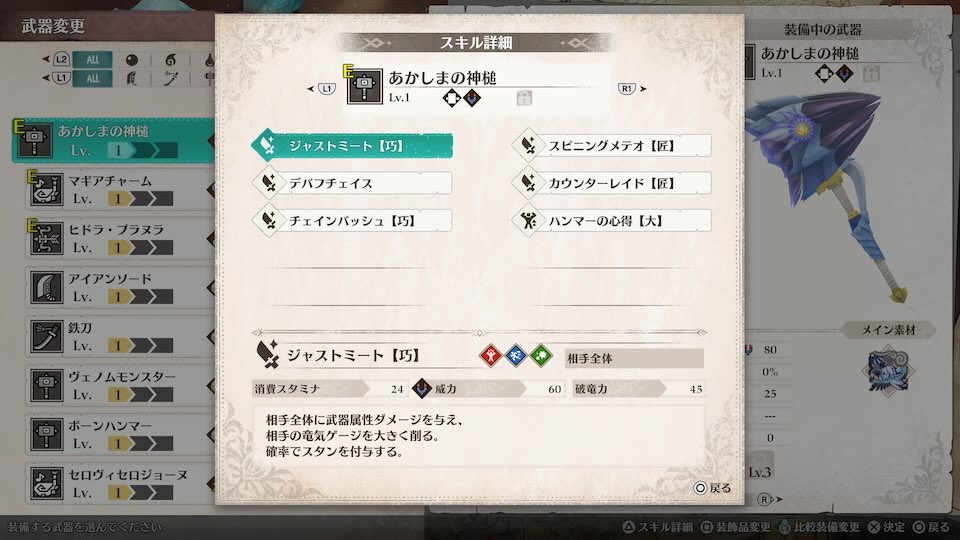 おすすめはイブシマキヒコ素材から作成できるあかしまの神槌です。