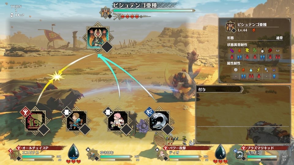 - 砂上船の航路でビシュテンゴ亜種(Lv44)と戦闘
