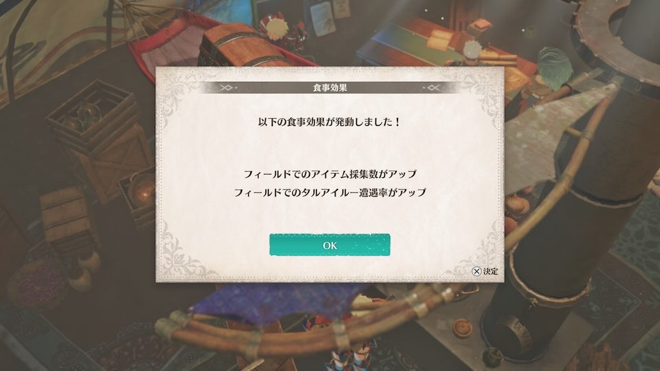 - フィールドでのアイテム採取数アップ