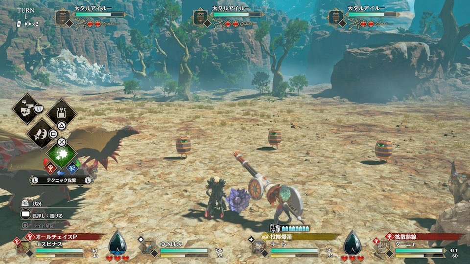 キートはタルアイルーとの戦闘時は初手必ずタル爆弾を使用してくれます。タル爆弾はモンスターの防御力を完全無視する攻撃なので防御力が高いタルアイルーも1ターンで全滅できます。