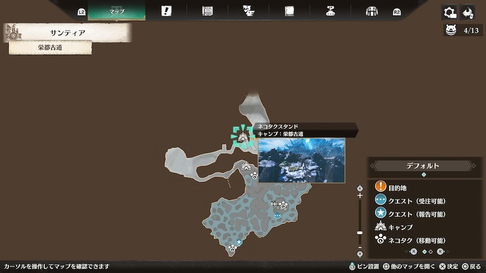 新エリア入って最初に見つけることができるキャンプが「栄都古道」になります。