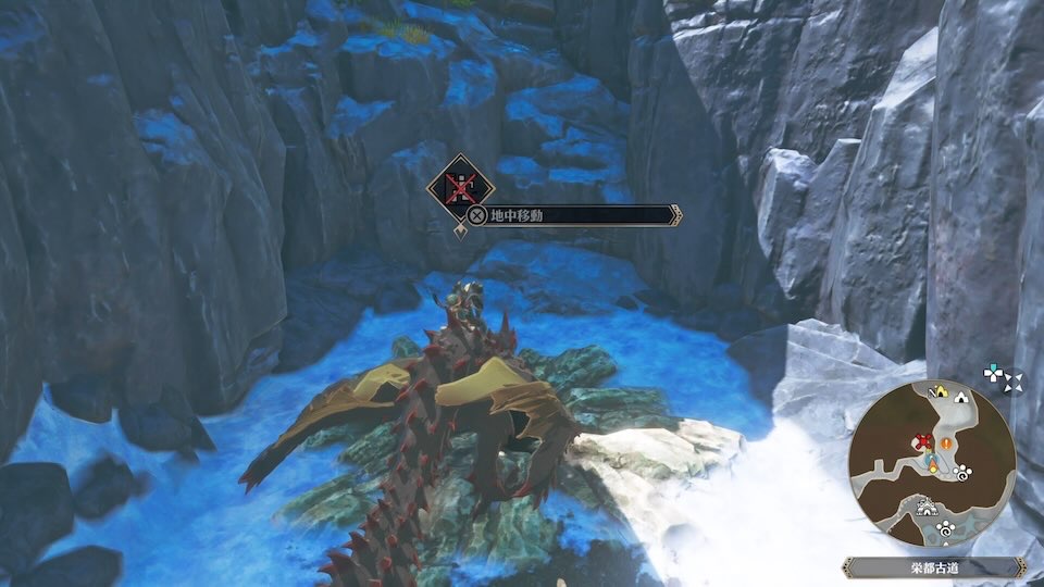 凶異レイギエナは、サンティアの栄都古道の探索エリアで出現します。ネコタクスタンド栄都古道すぐ近くに地中移動で移動できる穴があるのでそこを通った先です。