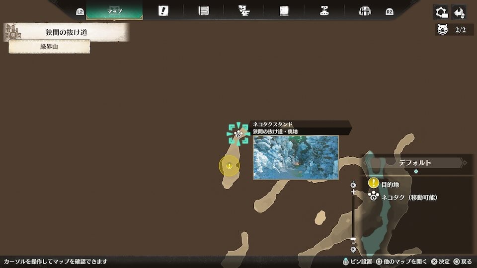 最寄りネコタクスタンドは狭間の抜け道・奥地です。