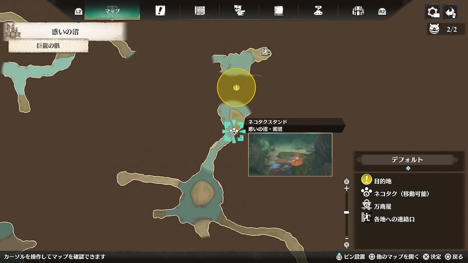 最寄りネコタクスタンドは迷いの沼・泥沼です。