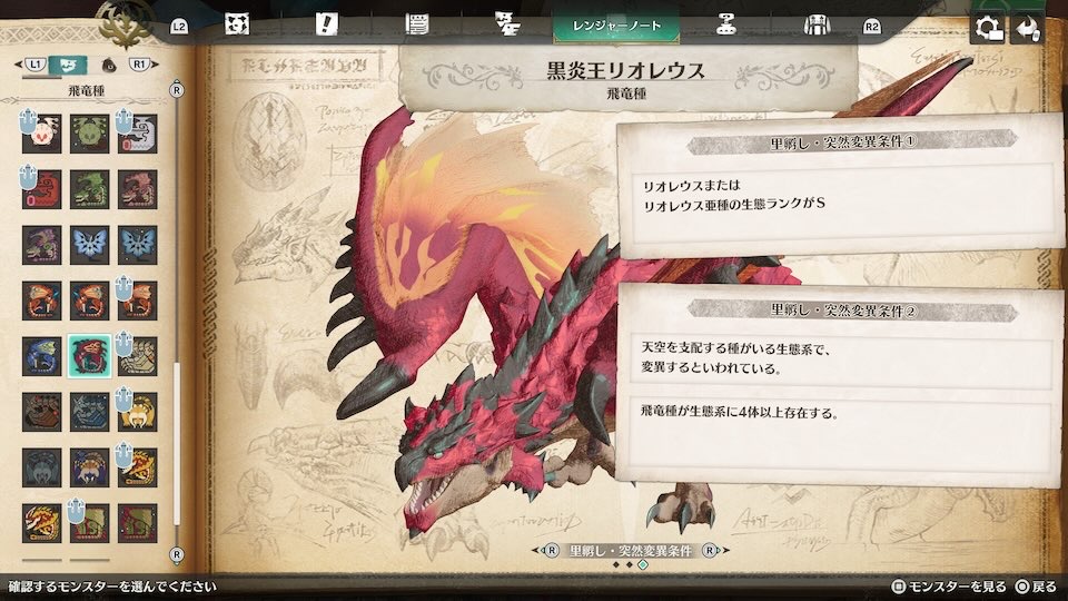 黒炎王リオレウスの入手条件はシンプルですが、「ストーリー進行」と「生態系条件」の両方を満たす必要があります。