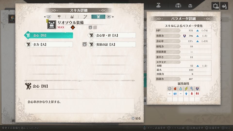 会心撃・回復【特】クリティカル発生時、自身のHPが回復する
