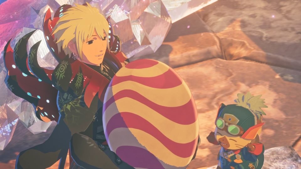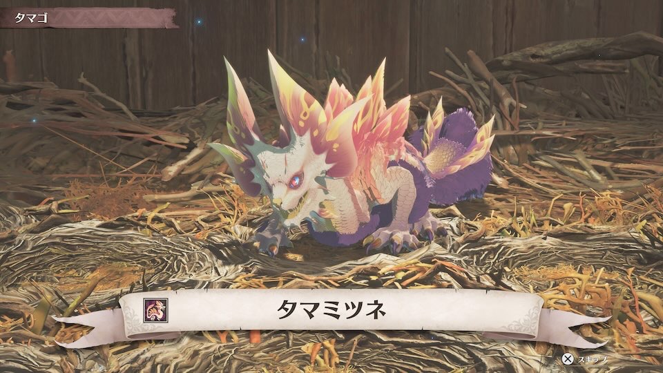 侵獣ショウグンギザミを帰巣させると、巣でタマミツネのタマゴを入手できます。あとはいつも通り、孵化、里孵し、タマゴ厳選を繰り返して、生態ランクを上げていきましょう。
