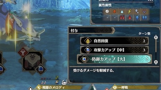 → 狩猟笛「飛躍のメロディ」で防御アップ【大】に強化