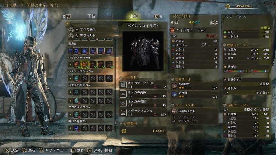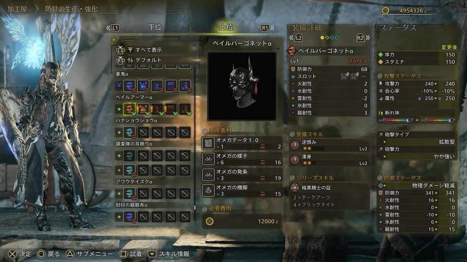 零式オメガ討伐後に作成可能な「オメガコスチューム」の性能とスキルはこちら