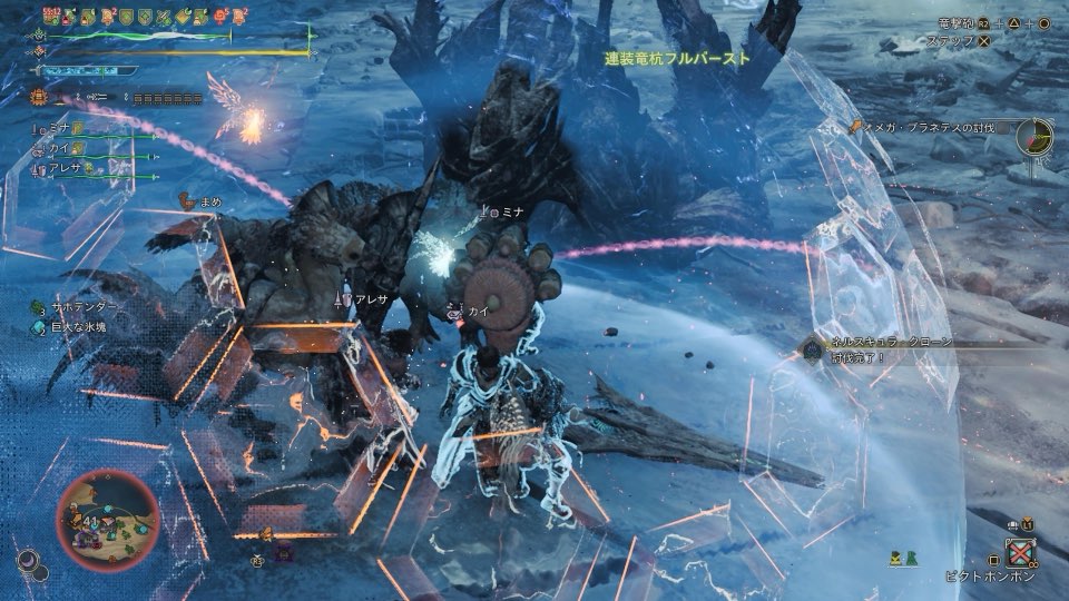 まず初めにオメガ・プラネテスのクエストは従来のモンハンクエストと異なりFF14のバトルシステムをリアルに再現しています。4人PT全員が火力で押し切ろうとすると広範囲の技がエリア内を埋め尽くしクリアが非常に難しくなってしまいます。