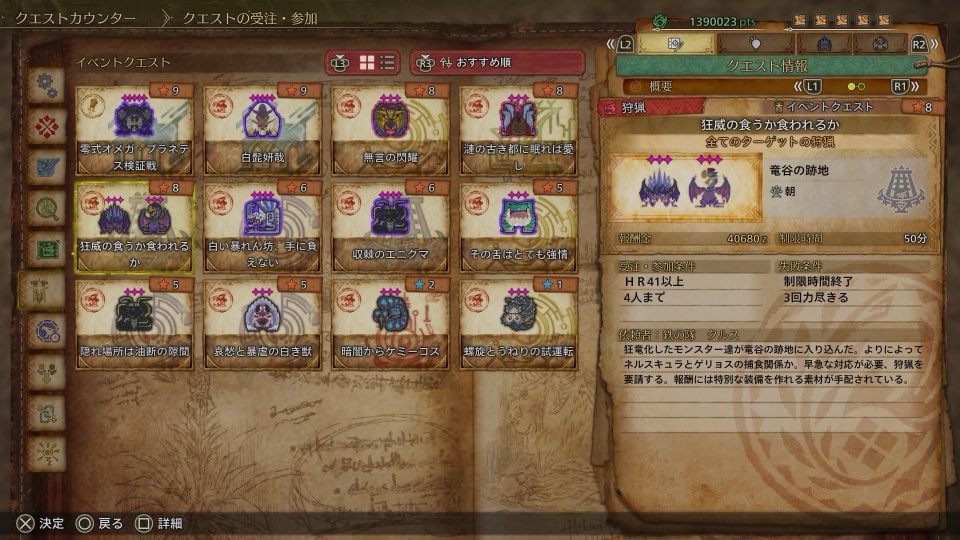 本記事は「モンスターハンラーワイルズ」イベントクエスト「狂威の食うか食われるか」の開催期間と報酬を紹介していきます。