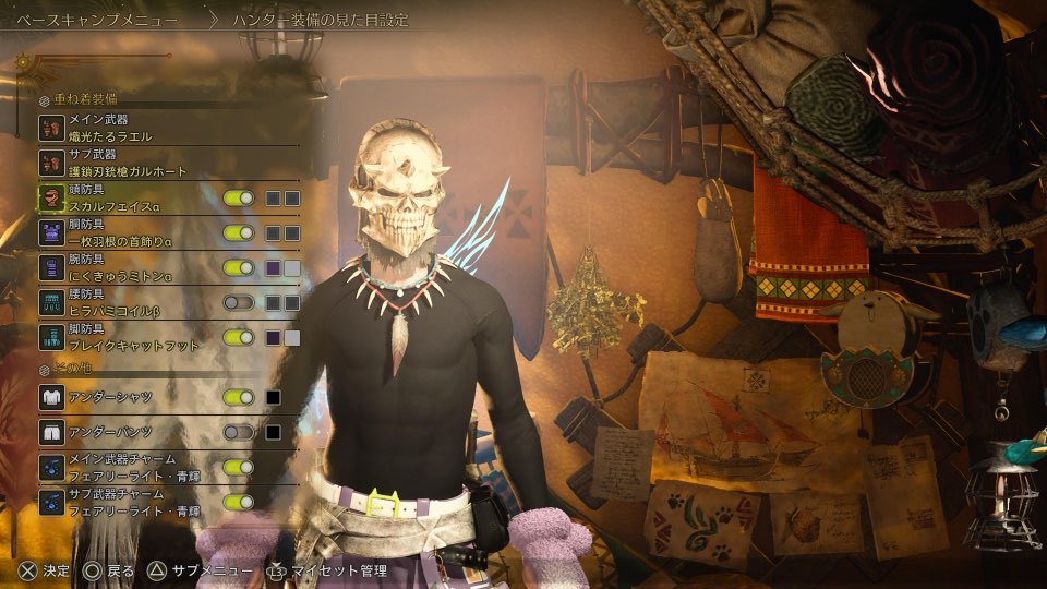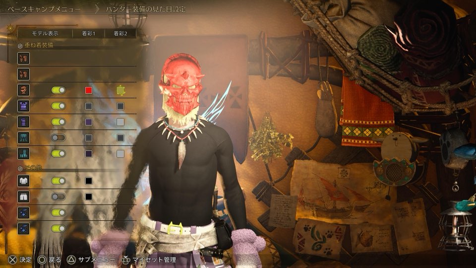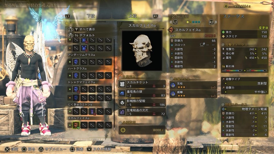 ハンターの重ね着装備「スカルフェイスα」は禍々しいガイコツをモチーフにした歴代モンハンに何度も登場している人気の頭装備です。