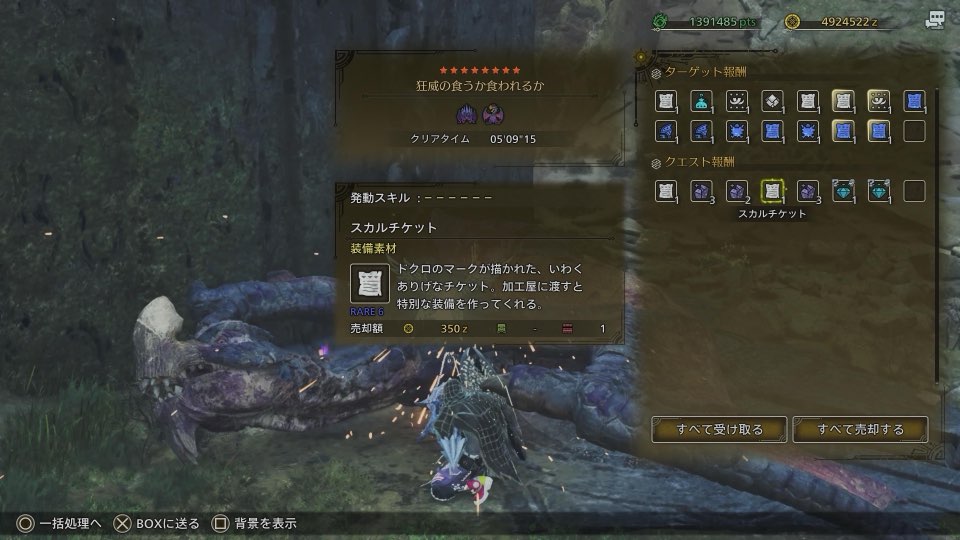 今回のイベントクエストでは「スカルフェイスα」が作成できる特別なチケット「スカルチケット」がクリア報酬として1枚以上入手出来ます。