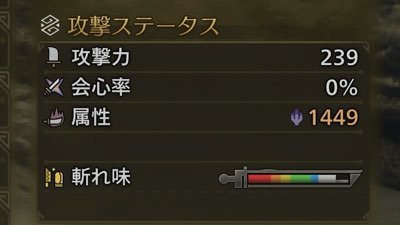 上記スキルが属性値の上昇するために必要なスキルになってます。狩猟中に全てのスキルを同時発動することは難しいですがどれかが発動してくれるだけでも属性値が上がるので火力UPに繋がります。