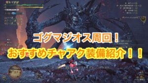 ゴグマジオスは巨戟アーティア武器の復元強化の専用素材「油濁した遺装置」を大量に集めるエンドコンテンツとして周回が必要なモンスターです。その中でもチャージアックスはゴグマジオス周回においてとても相性がいい武器になってるので、チャージアックスの装備スキル構成を悩んでいる方の参考になると幸いです。